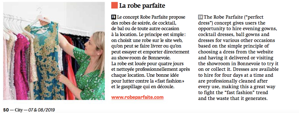 L'article paru dans Lëtzeburguer Journal sur notre philosophie de la mode et la location de robes.