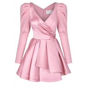 ROBE DE COCKTAIL ROSE À MANCHES BOUFFANTES